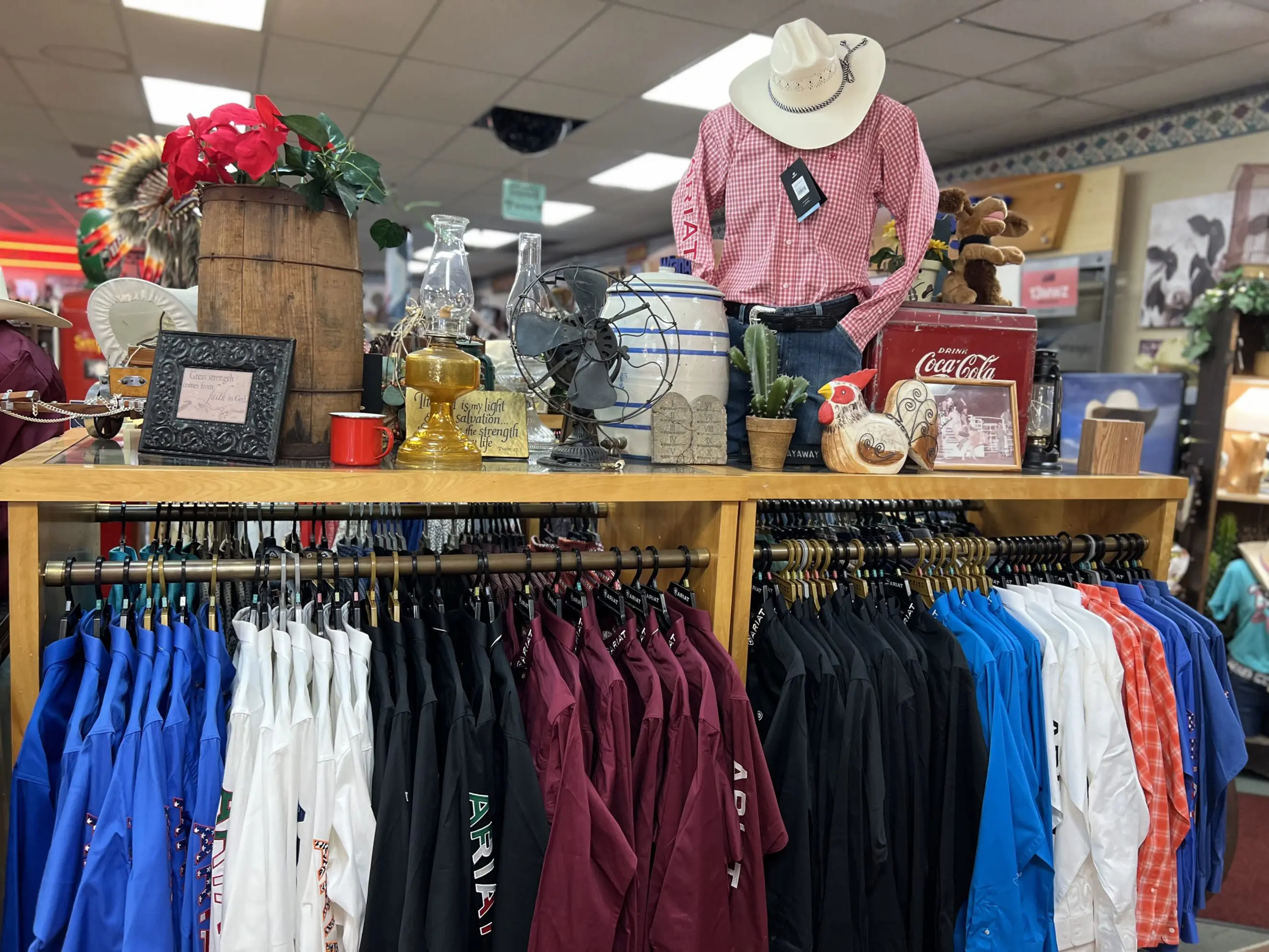 Whether you need something lightweight for summer, something warm for winter, or a polished western shirt for a night out, you’ll find a broad mix of prints, solids, plaids, and more. Jackets, vests, and insulated outerwear are available seasonally.